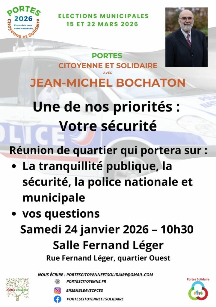 Samedi 24 janvier 2026, 10h30 à la salle Fernand Léger – Réunion publique – Une de nos priorités : Votre sécurité